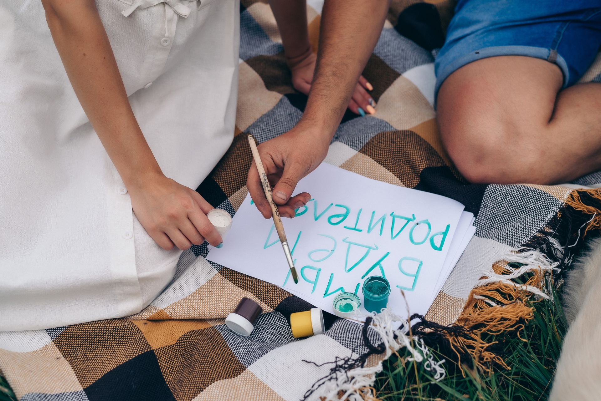 на море, в поле, в парке.